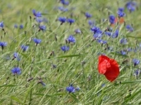 Kornblume zwischen Klatschmohn Centaurea cyanus zwischen Papaver rhoeas